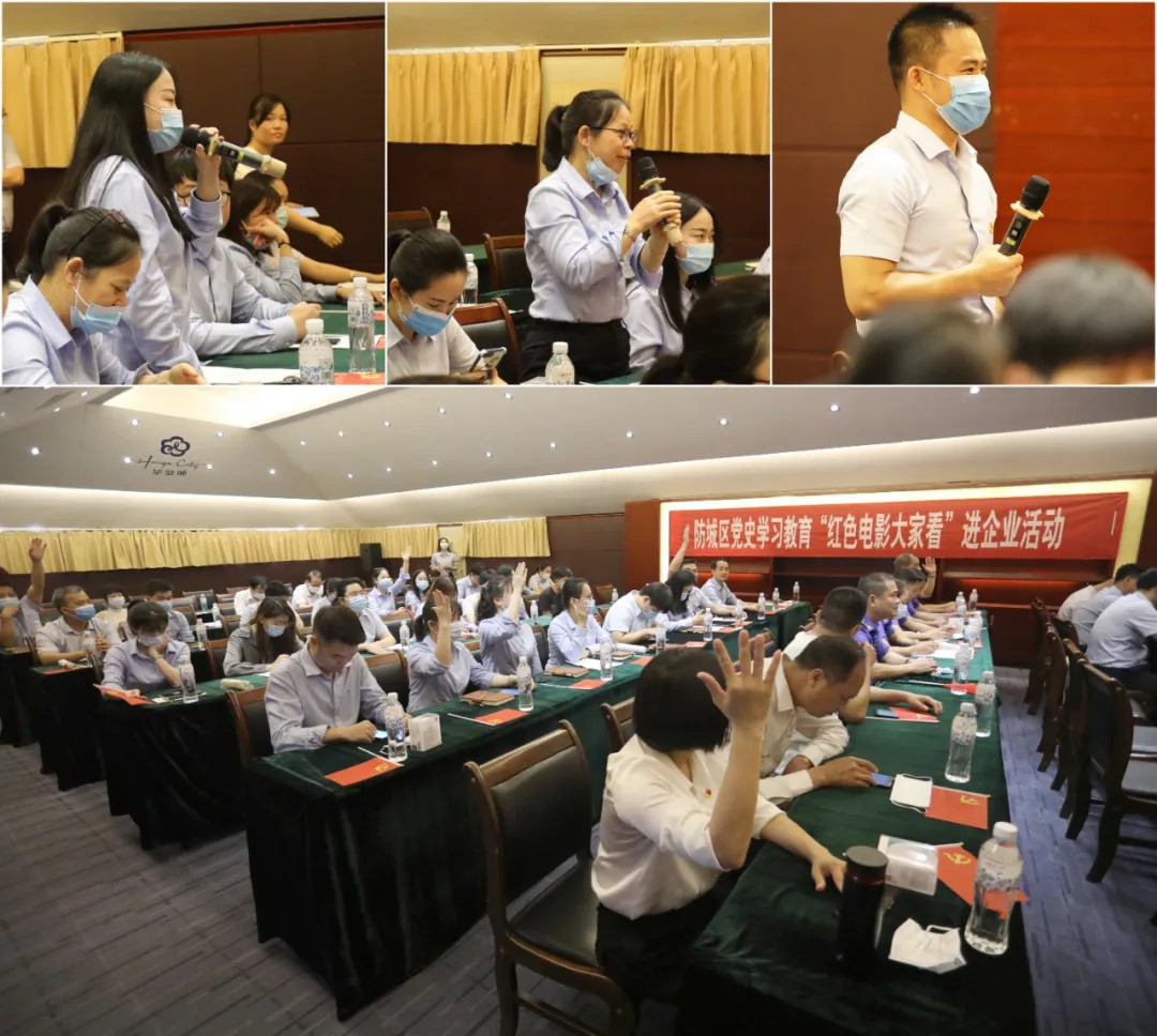 2021年4月2日下昼,,,,,防城区党史学习教育“感党恩?跟党走”主题“红色影戏各人看”进企业运动顺遂走进广西CQ9电子·(中国)唯一官方网站投资集团,,,,,防城区委宣传部、防城区城乡建设和都会治理局携手广西CQ9电子·(中国)唯一官方网站集团在防城港CQ9电子·(中国)唯一官方网站城配合举行了此次主题运动。。。。。。。。中共防城区委宣传部常务副部长、新闻出书局局长李清华,,,,,防城区建管局副局长李文超,,,,,CQ9电子·(中国)唯一官方网站集团党委书记、副总裁庞树玉,,,,,集团党委副书记、副总裁廖人兴,,,,,集团副总裁熊昭斐等向导以及防城区党史学习教育运动向导小组办公室成员、防城区城乡建设和都会治理局全体党员、广西CQ9电子·(中国)唯一官方网站集团党委党员代表一同加入了此次运动